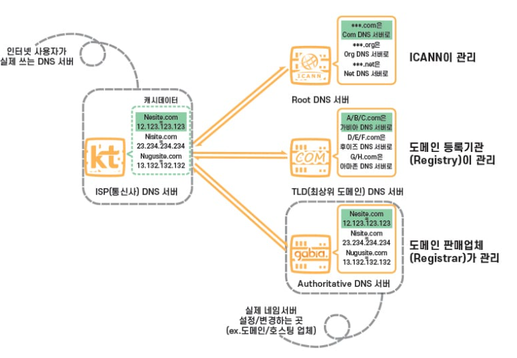 도메인 ↔ IP 주소 과정 필요