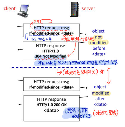 💡 conditional GET : web cache가 자신이 가지고 있는 copy본이 최신 버전인지 확인할 때 유용하게 사용 가능