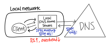 💡 Local DNS name servers - cache 역할 - 오늘 날 거의 모든 네트워크에서 사용