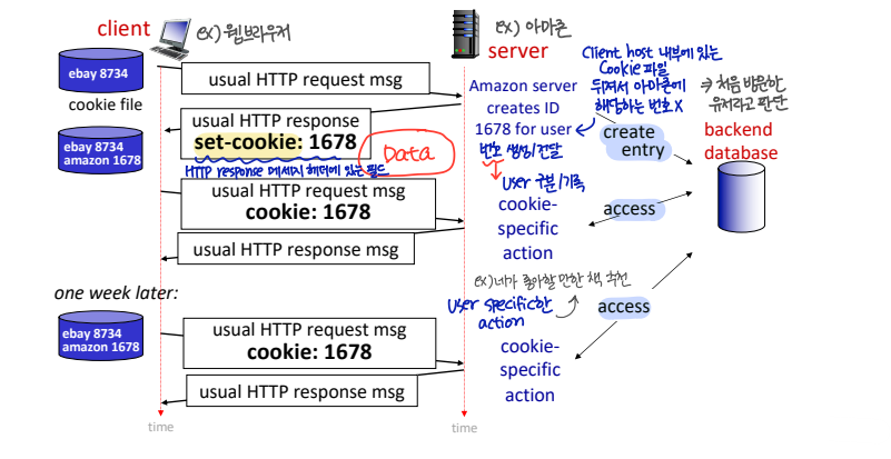 "HTTP is stateless" : request가 오면 response하고 끝! (서버는 클라이언트의 예전 정보 기억 X)