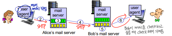 💡 HTTP vs SMTP - (클라이언트 입장) HTTP가 pull이라면, SMTP는 push - HTTP는 각각의 object들이 캡슐화되어 그차체의 메시지로 보내지는 반면, SMTP는 여러개의 object들이 여러개의 메시지 형태로 보내짐