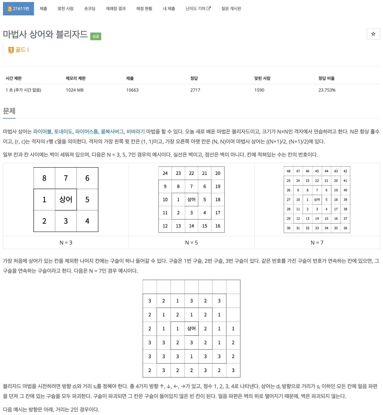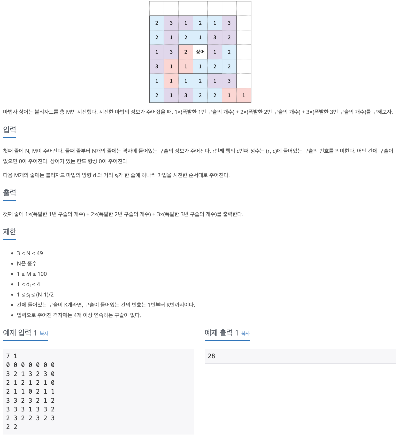 문제 바로가기> BOJ 21611번: 마법사 상어와 블리자드