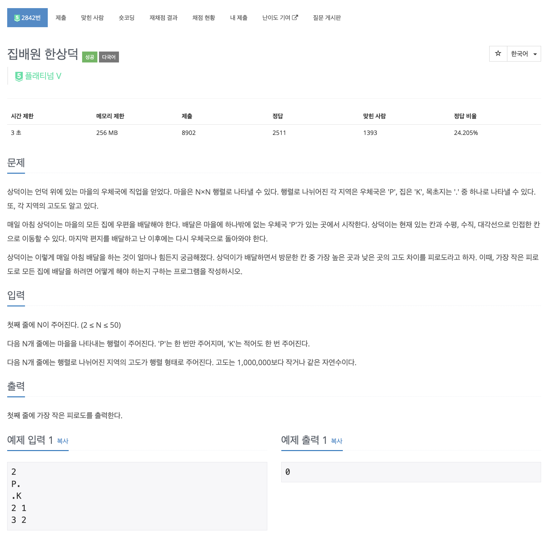 2842번: 집배원 한상덕