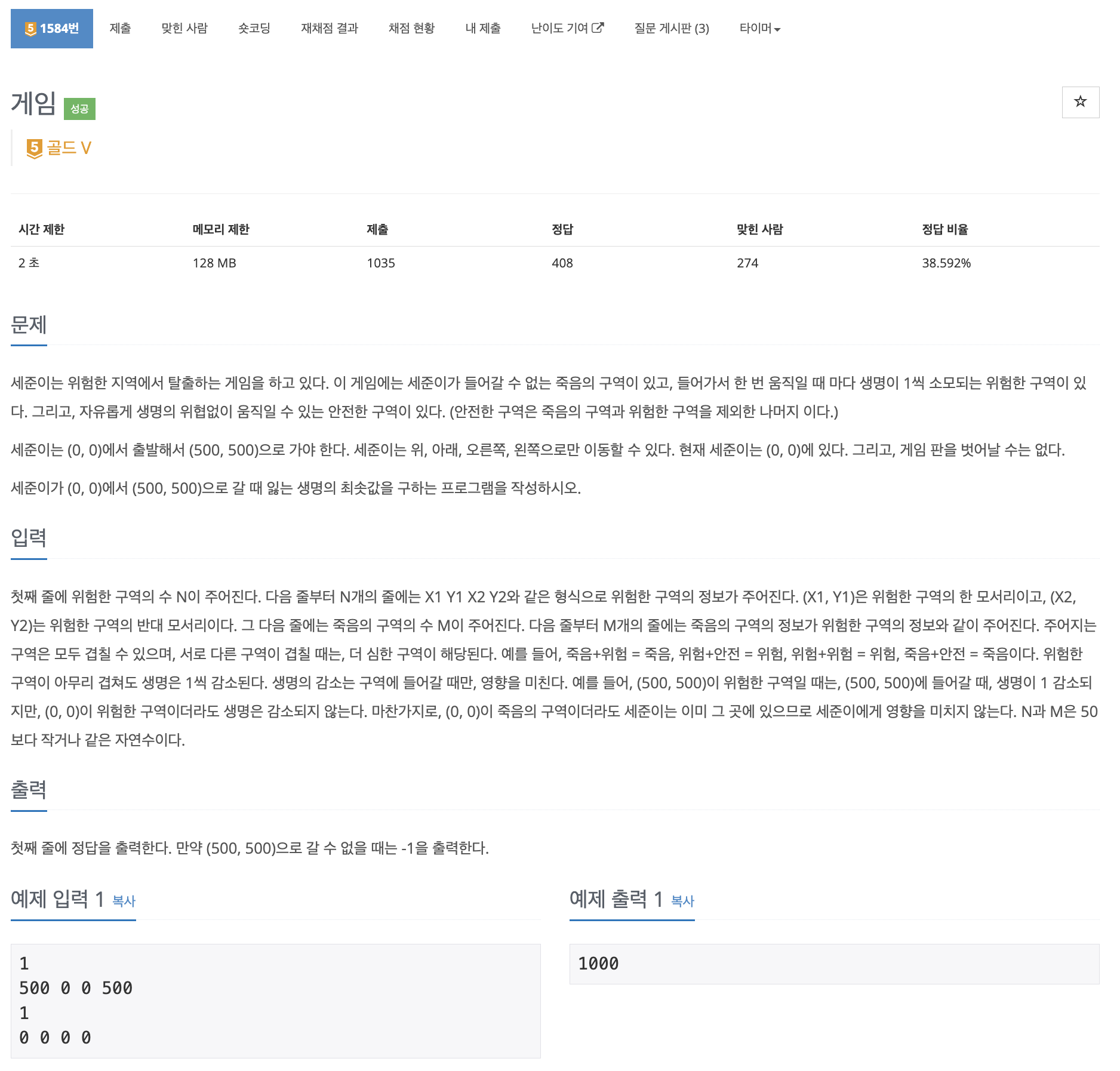 문제 바로가기> BOJ 1584번: 게임