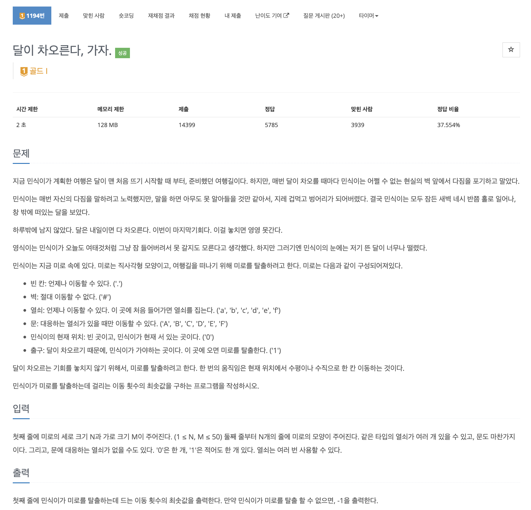 문제 바로가기> BOJ 1194번: 달이 차오른다, 가자.
