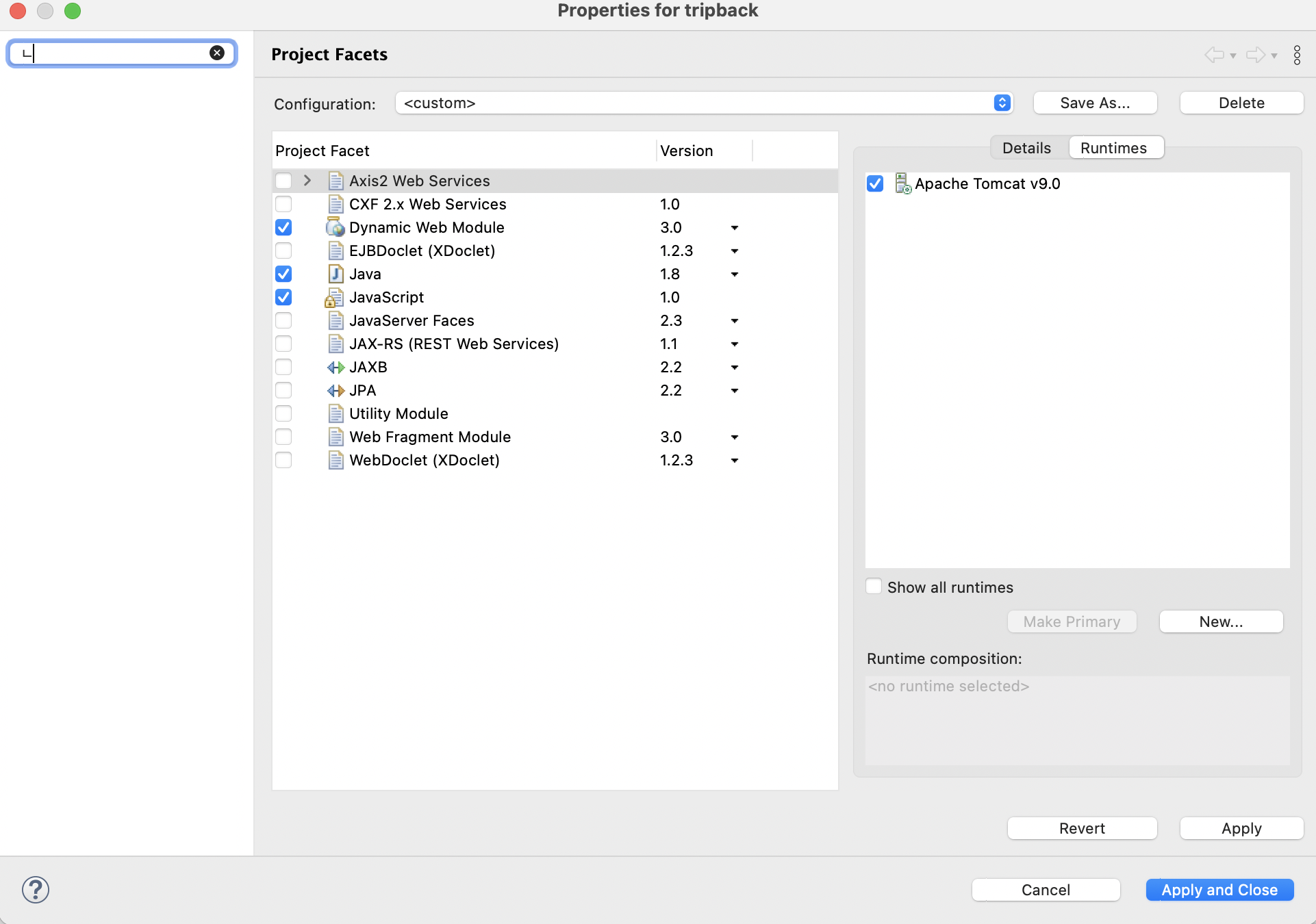 Project Facets์ Runtimes์ ํฐ์บฃ ์ค์ ์ด ์ ๋ผ ์์ด์ ๋ฐ์!