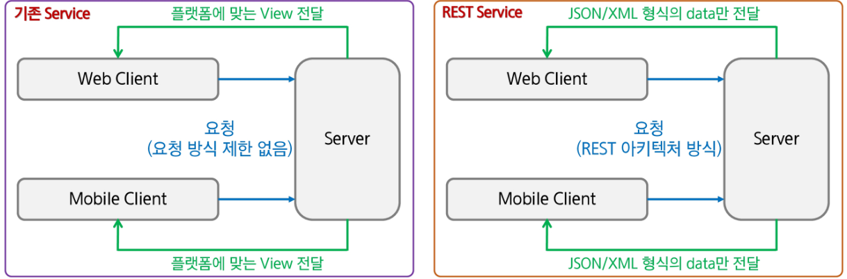 기존 Service : 요청 처리 후 가공된 data를 이용하여 특정 플랫폼에 적합한 형태의 View로 만들어 반환