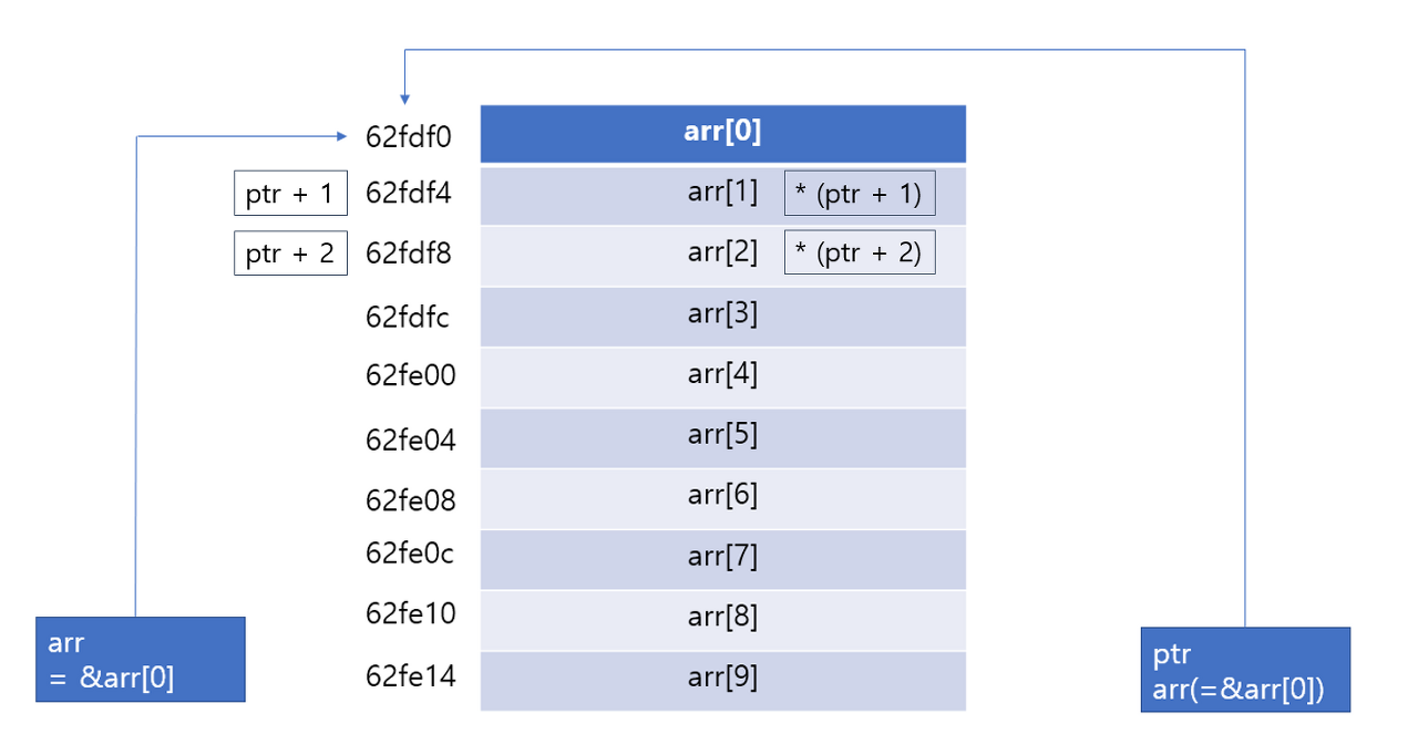 ex) int 형 변수0x7ffdc24ae874+1= 0x7ffdc24ae878