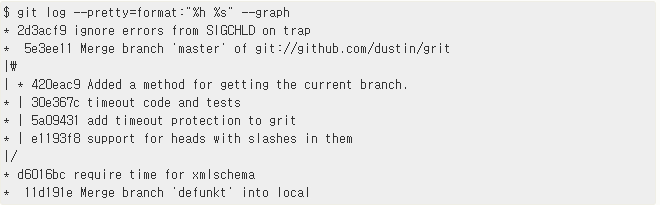 - 옵션 --pretty=online : 각 커밋을 한 라인으로 보여줌