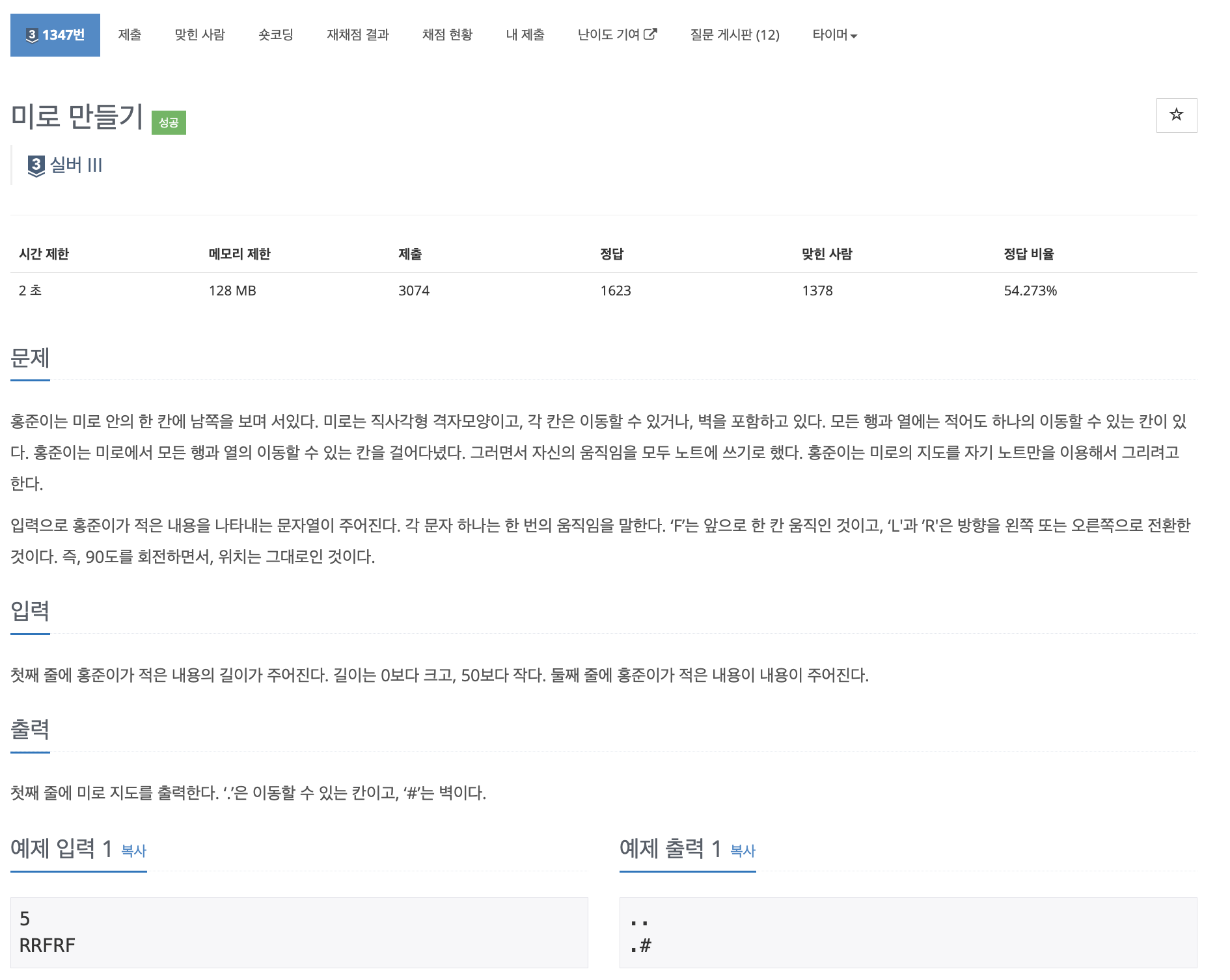문제 바로가기 > BOJ 1347번: 미로 만들기