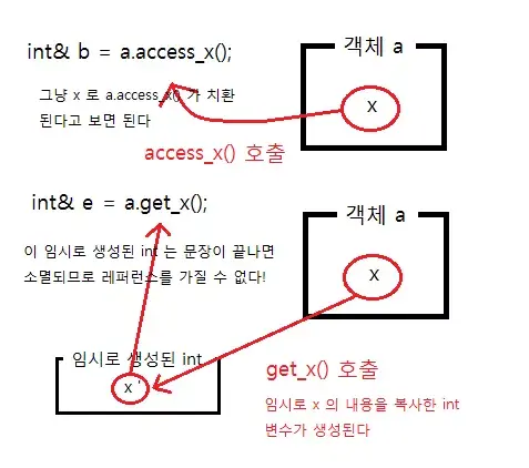 - 레퍼런스가 아닌 타입을 리턴하는 경우는 '값' 의 복사가 이루어지기 때문에 임시 객체가 생성됨