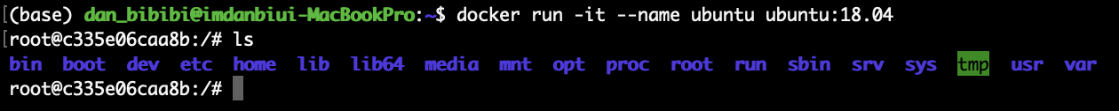 // -it : 컨테이너를 실행시킴과 동시에 interactive한 terminal로 접속