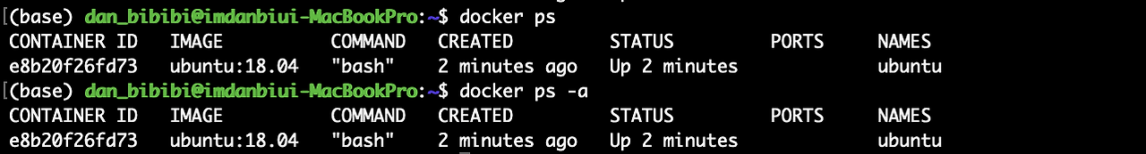 현재 실행 중인 도커 컨테이너 리스트를 출력하는 명령어