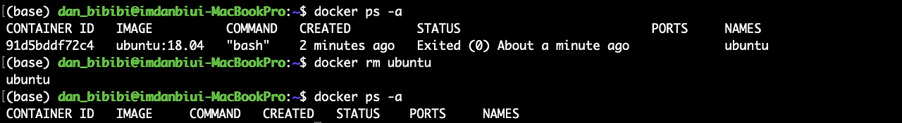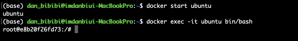 도커 컨테이너를 실행시키는 명령어 (exit 입력하고 나올 수 있음)