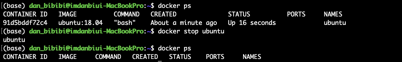 실행 중인 도커 컨테이너를 중단 시키는 명령어