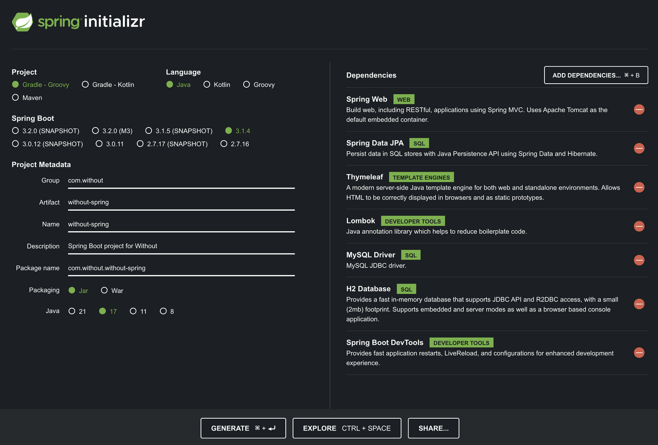 - 정식 릴리즈 된 버전에서 가장 최신 버전 선택 *SpringBoot 3.0부터는 JAVA 17이상만을 지원 !!