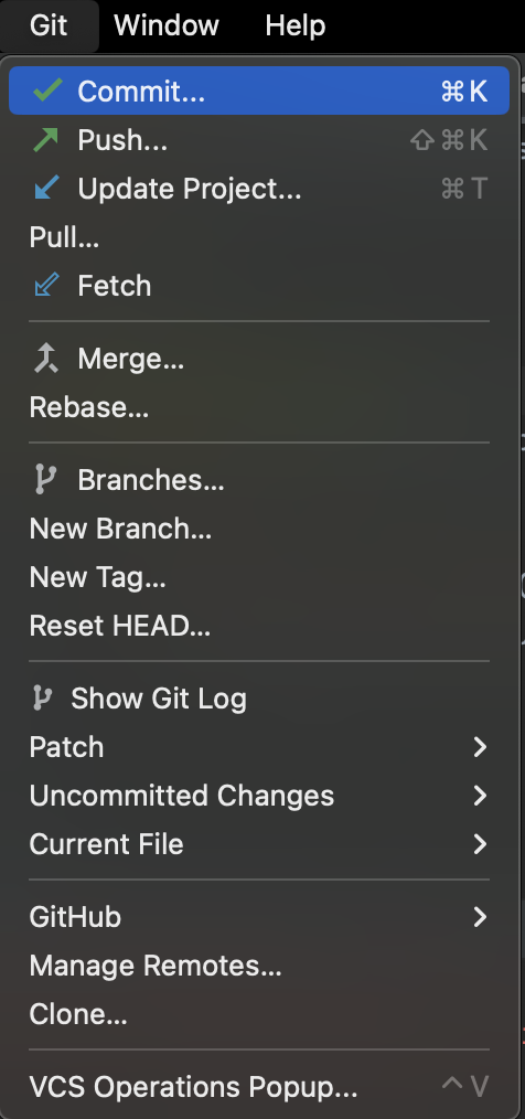 - 상단에 Git이 없는 경우, shift(⇧) 2번 연속으로 누르고 Git 검색