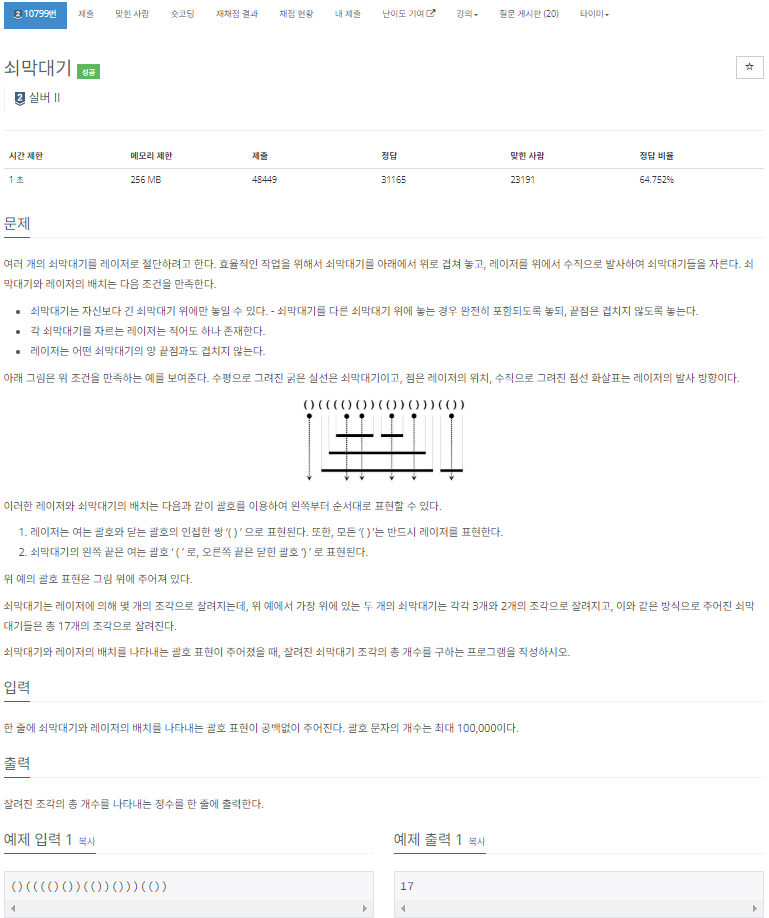 문제 바로가기> BOJ 1079번: 쇠막대기