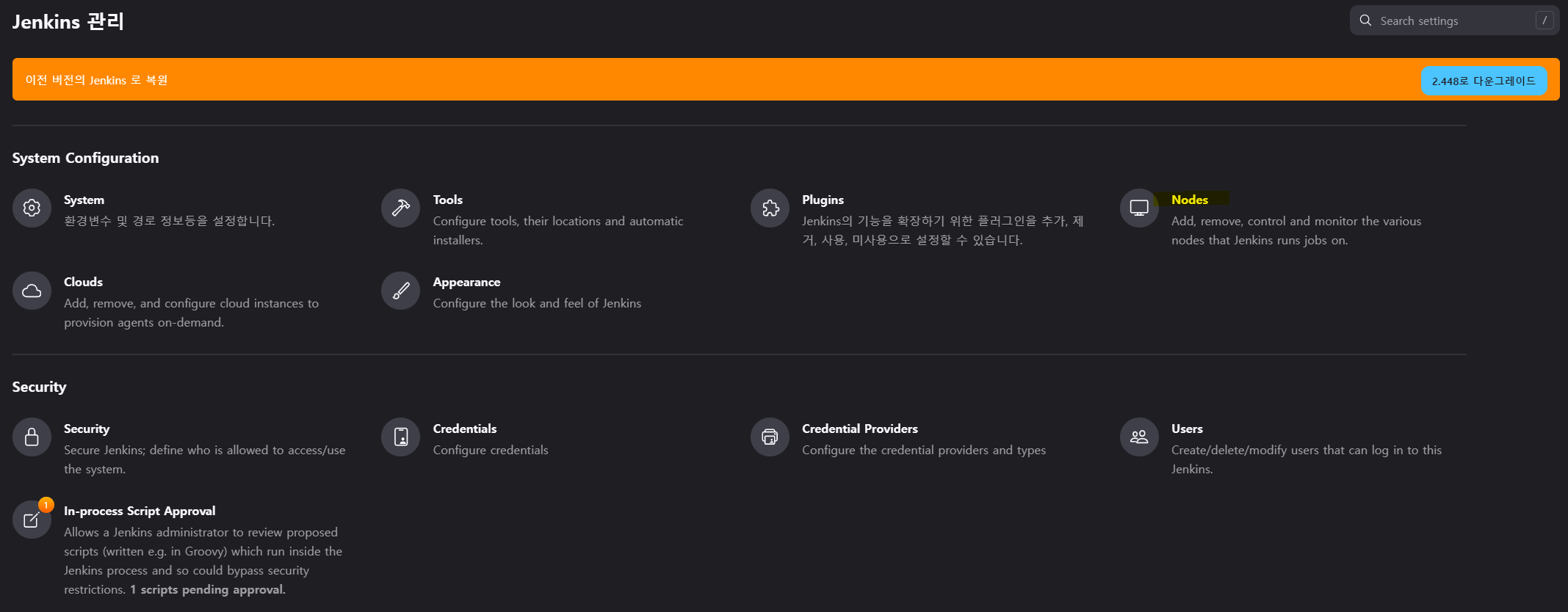 1. Jenkins 관리 > Nodes
