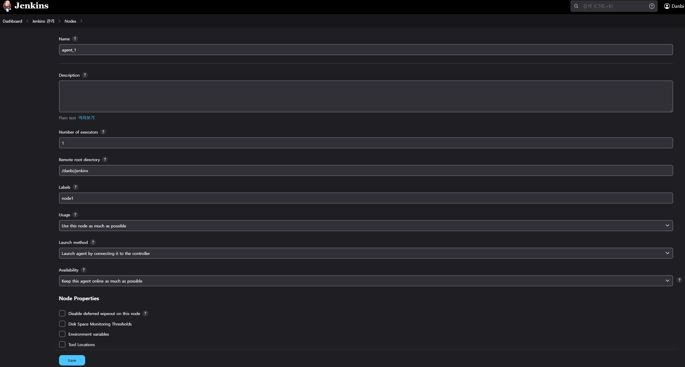 Name : Agent로 사용할 node의 이름