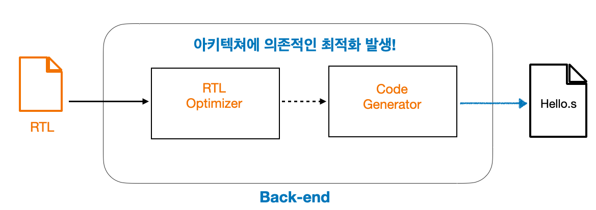 - 이후 고급언어와 어셈블리어의 중간단계인 RTL(Register Transfer Language) 생성