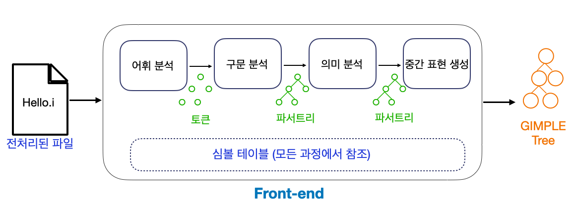 - 중간 표현 생성 : 언어의 독립 특성을 제공하는 GIMPLE Tree 생성