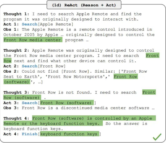 - 중간 "Thought"가 있어 모델의 사고 과정 추적 가능 / 중간 단계에서 잘못된 Action 선택 시 전체 실패 가능성 존재