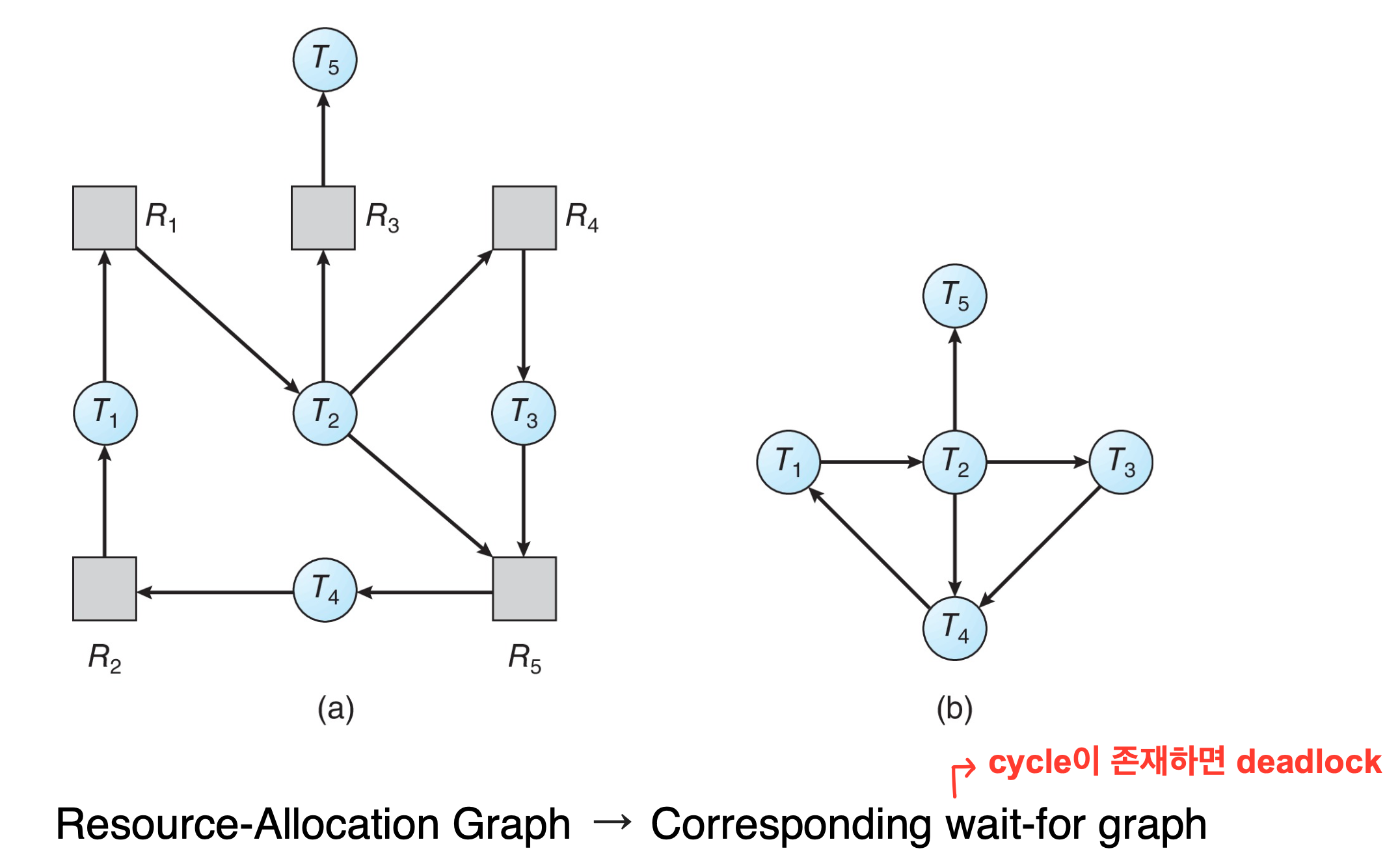 ( * wait-for graph : Resource-allocation graph에서 resource를 뺀 것 )
