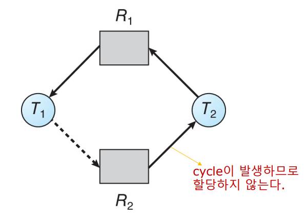 - claim edge (Pi ---> Rj) : Pi가 앞으로 Rj를 요청할지도 모른다