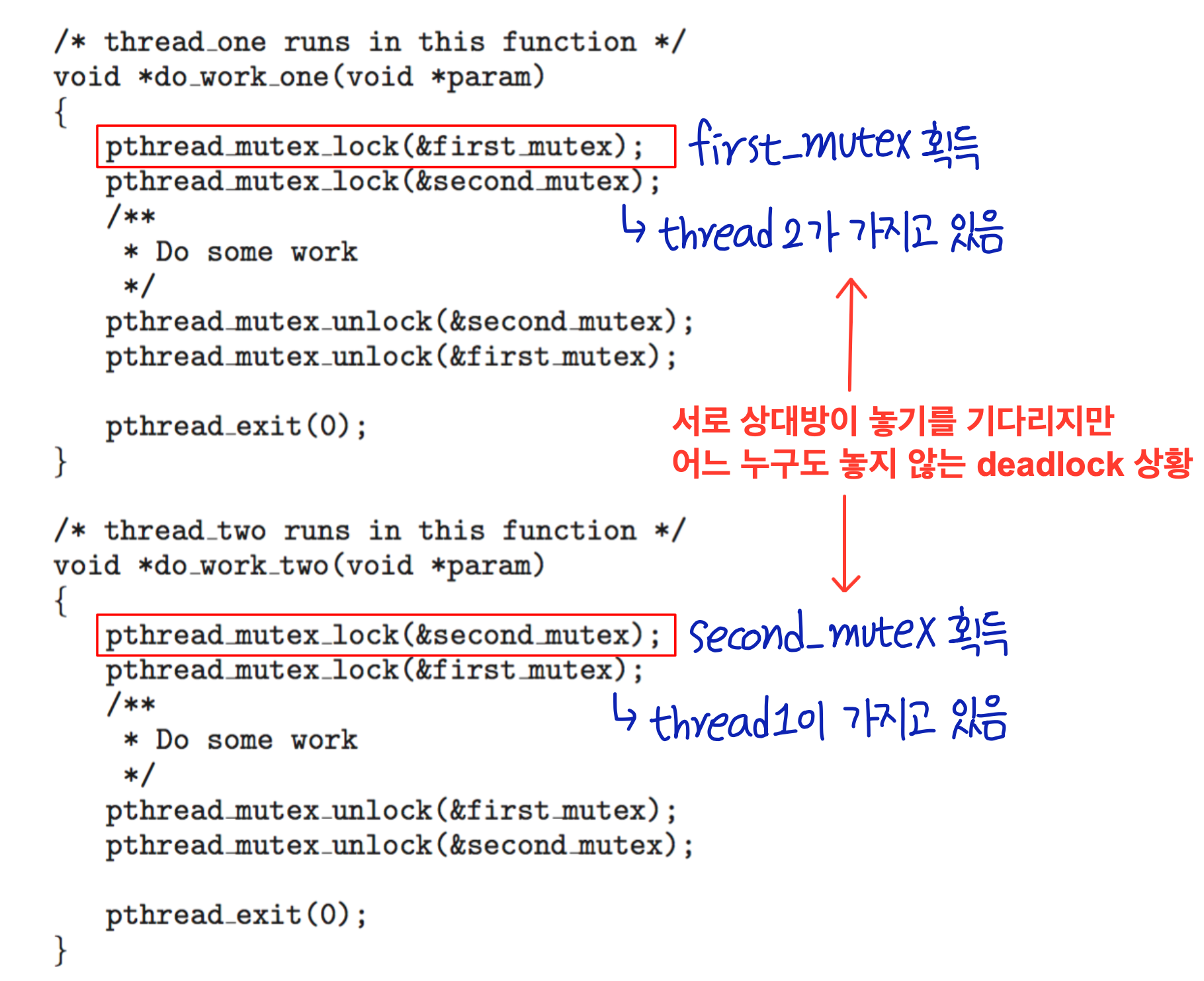 ex) 프로세스 {p0, p1, ... , pn} 이 있을 때 p0는 p1을, p1은 p2를, ... , pn은 p0을 기다림