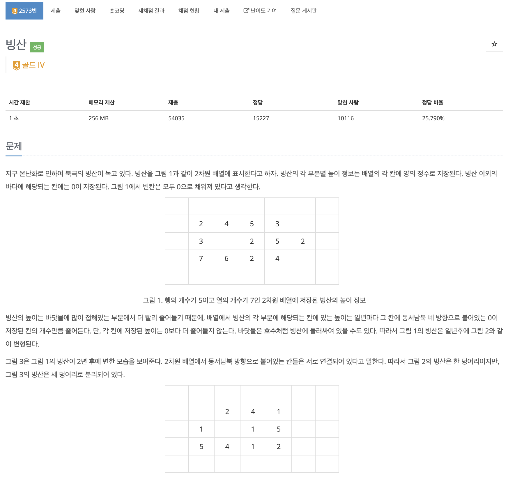 dfs를 사용하여 빙하가 분리되었는지 확인해주는 방식으로 문제를 풀었다!