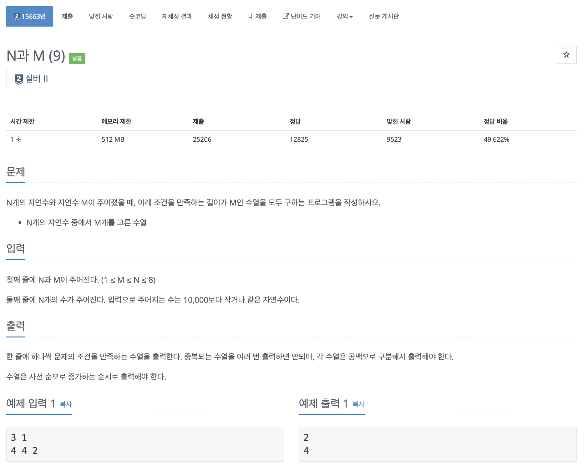 문제 바로가기> BOJ 15663번: N과 M (9)