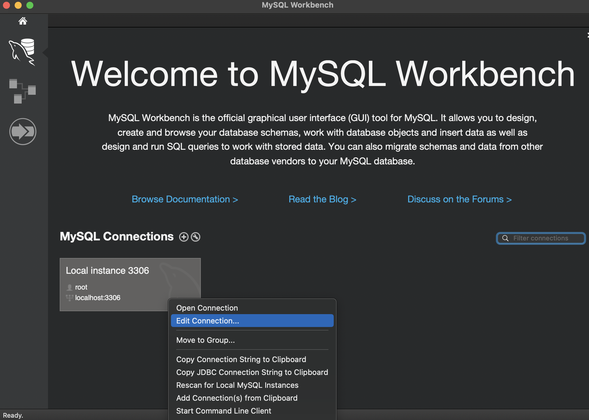2. local instance 3306 우클릭, Edit Connection을 클릭한다.