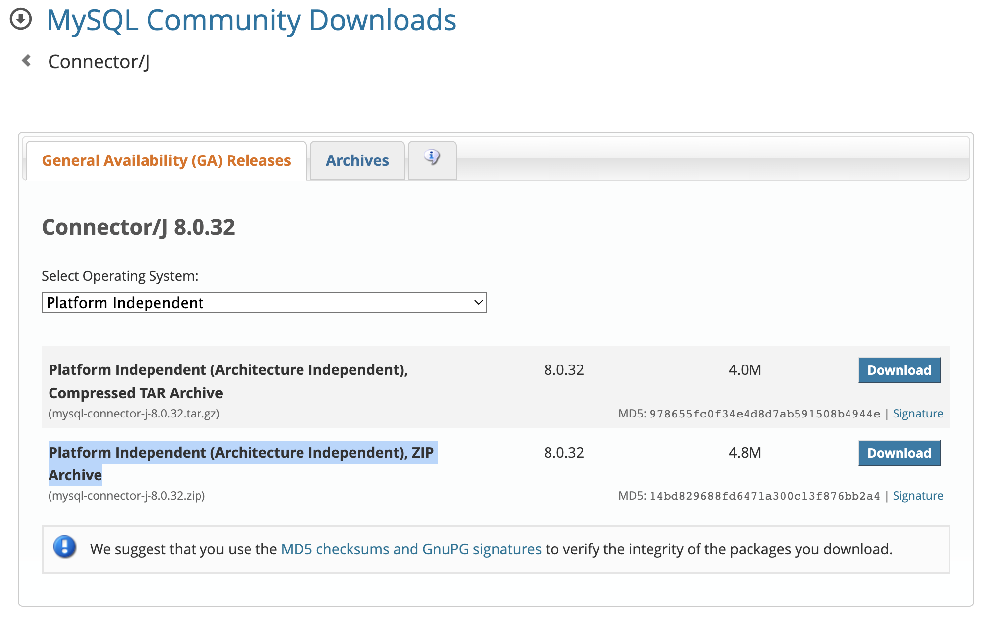 MySQL :: Download Connector/J
