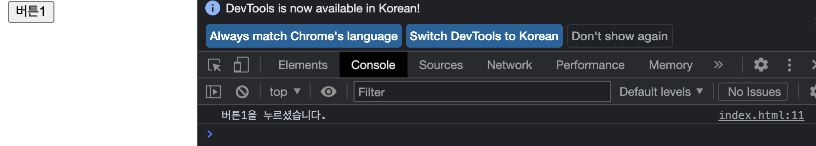 console.log("버튼1을 누르셨습니다.");