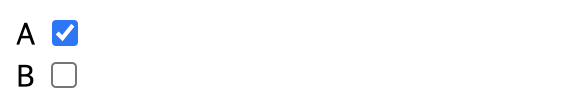 <label> A <input type="checkbox" name="option1" value="a" checked> </label> <br>