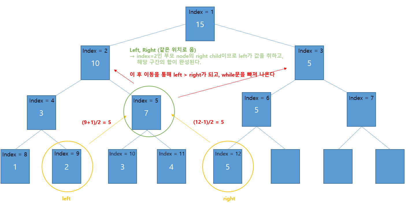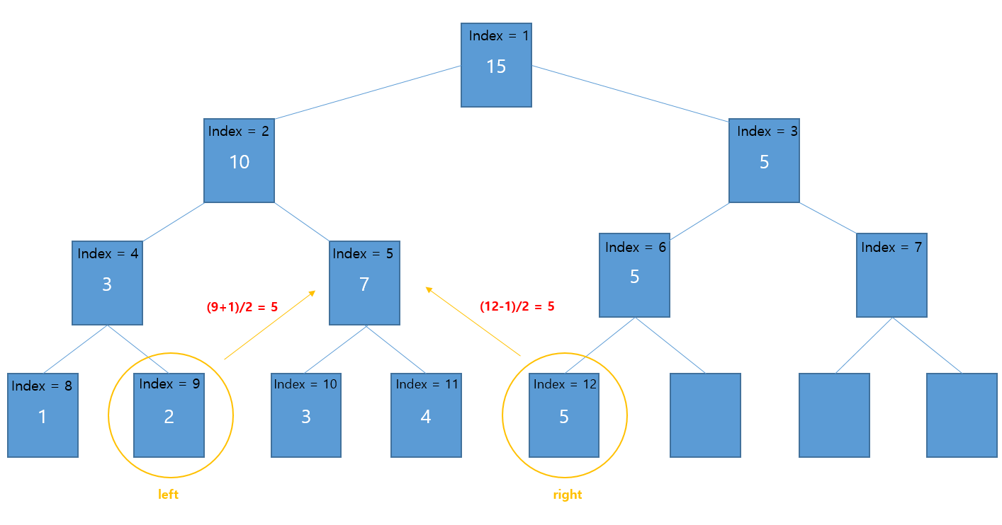 left += (tree_size - 1); right += (tree_size - 1); // tree에 알맞는 index로 변환